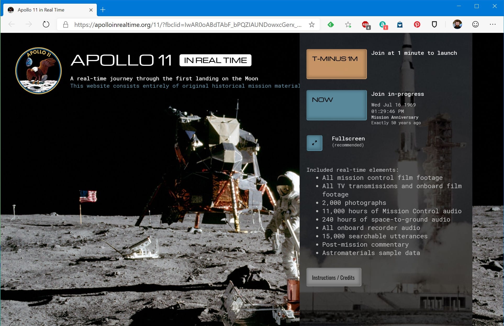 Take a real-time journey through the first landing on the Moon with original historical mission material!